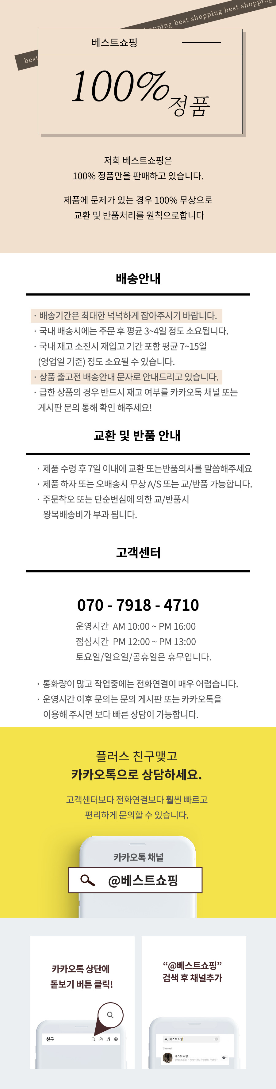 반품/교환은 상품수령후 7일이내로 미착용상에서만 진행 가능합니다